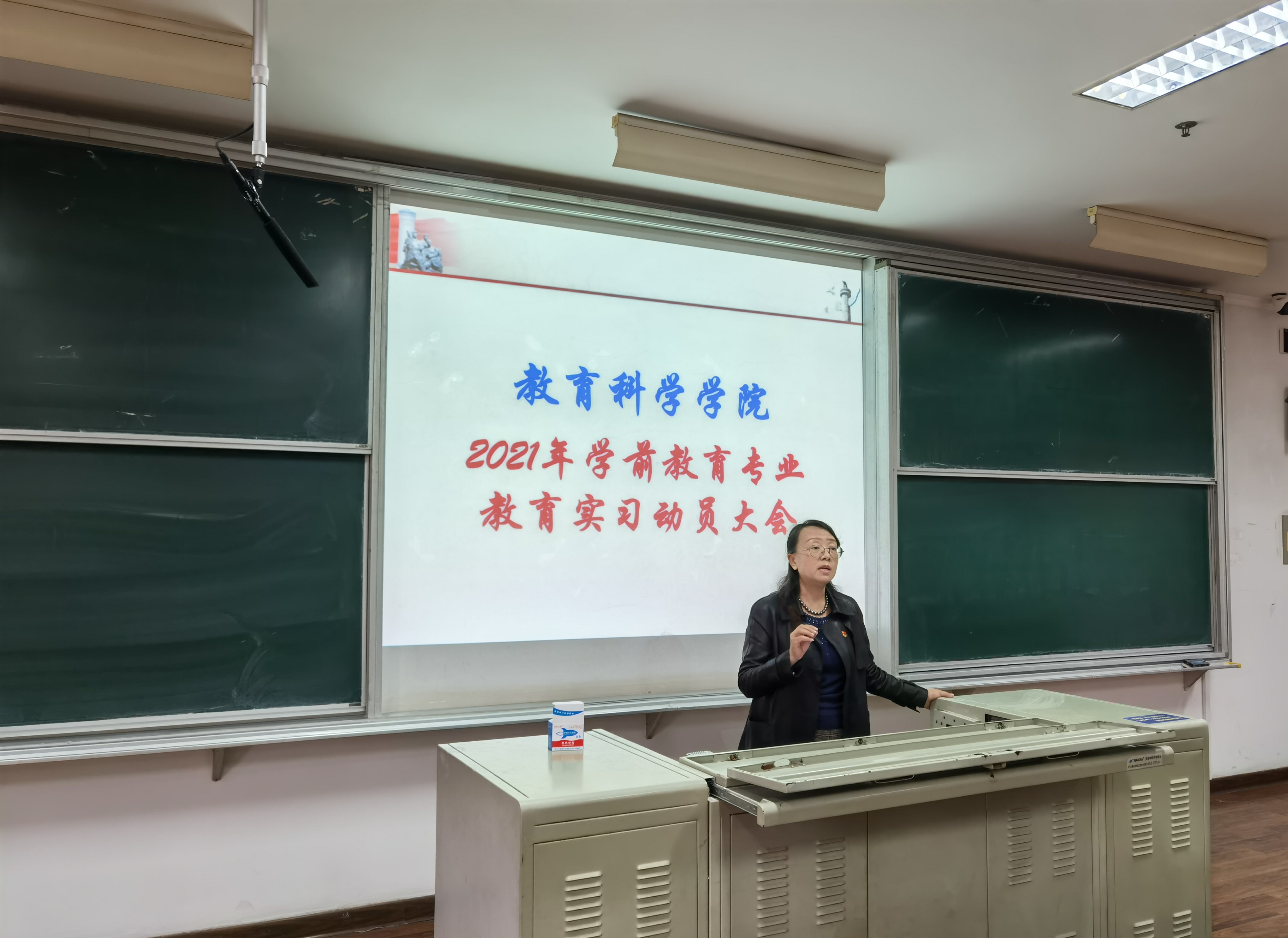 刘强书记对全体2018级学前教育专业师范生进行教育实习动员讲话。她指出,教育实习是我们培养合格的幼儿教师教育技能的重要课程,具有非常重要的意义。刘强书记介绍了实习单位的相关情况与实习方面的总体要求,针对实习生应遵守的职业道德和需重视的安全问题提出几点建议,希望实习员工珍惜实习实践的机会,怀有认真负责的实习态度和吃苦耐劳的工作精神,认真学习实践,为公司增光添彩。系主任孙青老师对教育实习工作进行了详细的部署,对员工参加教育实习的每个内容做了说明,希望全体实习生在教育实践过程中得到锻炼和提升,高质量完成实习手册要求的各项任务,并要求实习生遵守实习纪律,加强自我管理,并祝愿全体实习生学有所获,实习工作顺利,圆满完成实习任务。