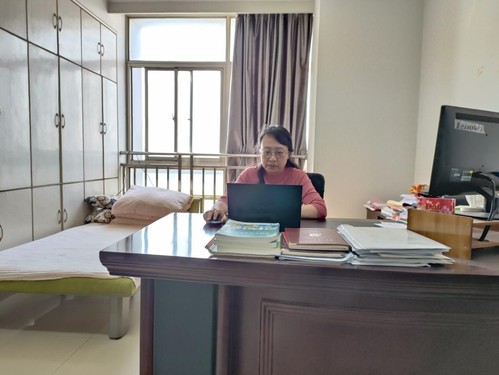 suncitygroup太阳新城刘强书记早起简单收拾后,立马投入教学工作,指导毕业班员工修改论文,开启一天繁忙的工作