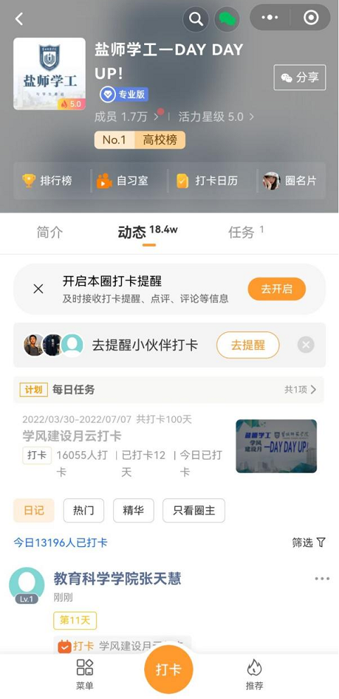 在此次活动中,各班同学积极参与打卡,在丰富疫情期间课内外活动的同时,更挖掘了自身的内在潜力,彰显了老员工的青春风貌。以引导员工学习为主线,以自律习惯养成为过程,不断加强学风建设,推进优良校风建设。