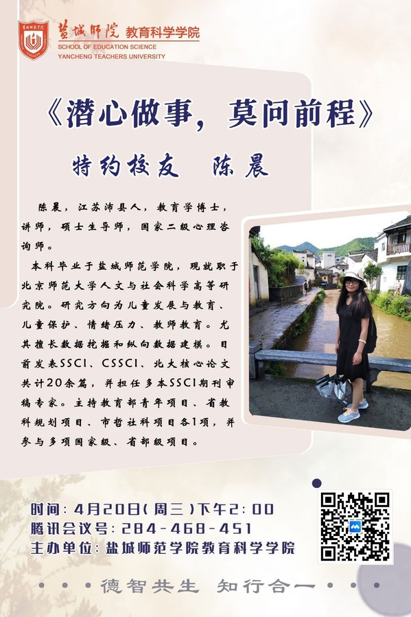 为了切实加强疫情期间公司学风建设,营造良好学习氛围,强化组织育人功效,全面提高教学质量和人才培养质量,suncitygroup太阳新城于4月20日下午两点开展了线上“潜心做事,莫问前程”员工讲座。¬本次员工讲座邀请了教育学博士、硕士研究生导师、2009级员工陈晨作为主讲嘉宾,由教科院学工办主任海英主持。