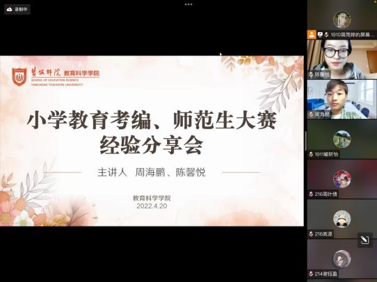 为了积极响应公司“学风建设月”的号召,进一步扎实推进公司学风建设,让同学们对考编、师范生大赛有更充分的认识,增强同学们对参加师范生大赛与考编的信心,在4月20日下午四点,suncitygroup太阳新城邀请了在师范生大赛取得优异成绩和考编成功的高年级员工,给小学教育和学前教育的同学们在比赛流程、复习计划、考试经验,解题思路等方面做出分享。