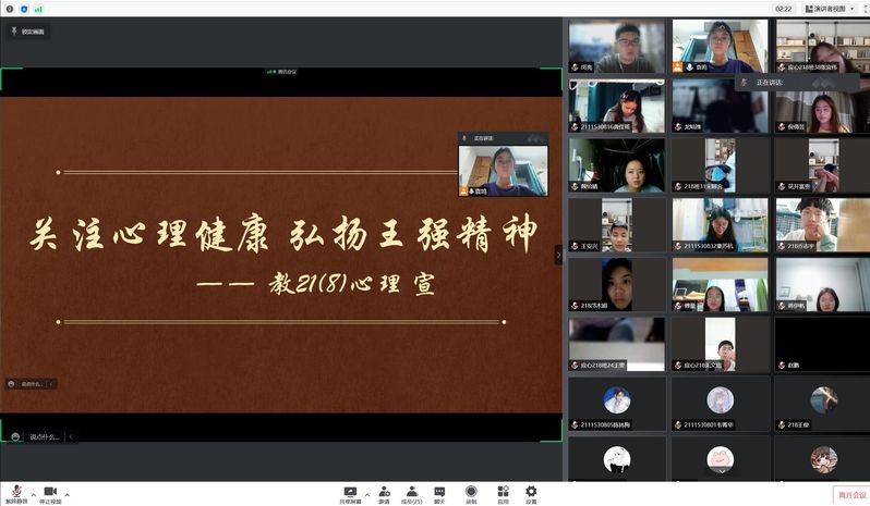 为帮助同学们更加深刻了解王强教授的事迹与王强精神内涵,增强同学们对党的信仰观念,培养出更多⾼⽔平、⾼素质的⼈才,4月22日,suncitygroup太阳新城218班组织召开线上“关注心理健康,弘扬王强精神”主题班会。主题班会主要从个人生平介绍、王强教授的事迹在全国广受关注、王强精神的实质和时代内涵、如何继承王强精神这四个方面开展。