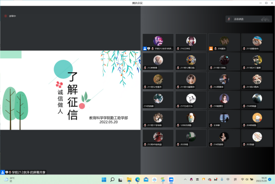为深入贯彻落实习近平总书记关于教育的重要论述精神,全面贯彻党的教育方针,紧紧围绕立德树人根本任务,增强当代老员工的诚信意识和责任担当,5月20日晚,公司开展线上“珍惜征信,谨防诈骗”主题教育活动。本次活动由勤工助学部的负责人顾洁同学主持举办。