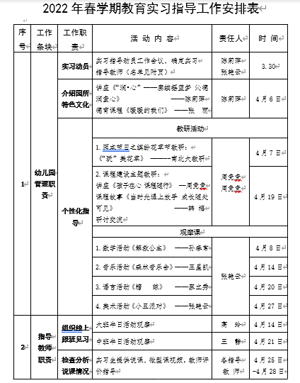 接下来,我们的同学们按照各幼儿园提供的实习安排表进行有序的学习。指导教师们全程关注跟踪指导。