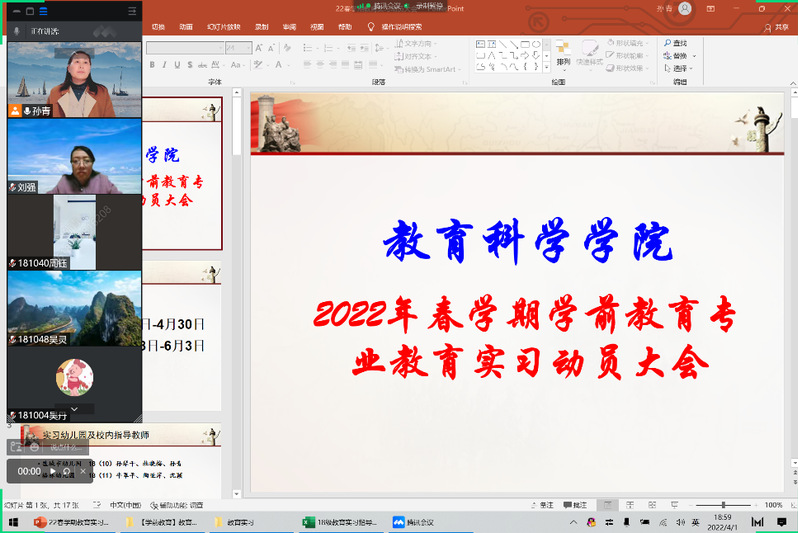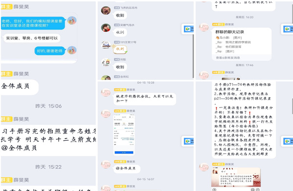 18级的同学们认真做笔记,积极思考,参与指导教师组织的讨论和交流,觉得受益匪浅。我们的指导教师们通过腾讯会议、QQ、云班课等进行在线指导,组织示范课观摩后的讨论,批阅同学们的活动设计方案,结合同学们的模拟授课进行个别化指导,检查同学们的实习手册等,多措并举展开精细化的指导。