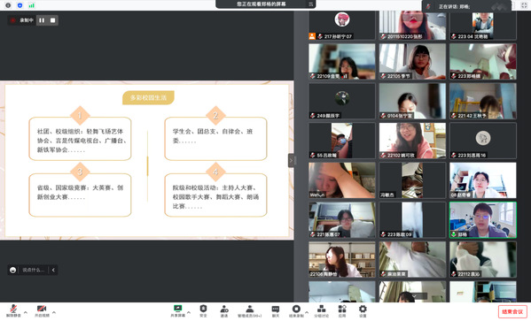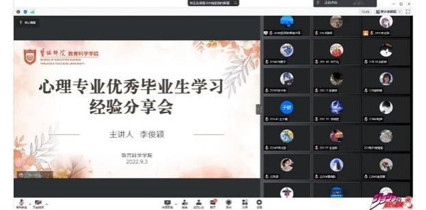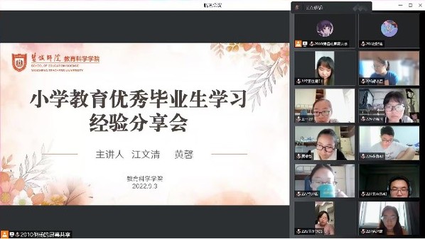 新学期伊始,suncitygroup太阳新城积极展开新生入学教育工作系列活动。为帮助公司大一新生初步了解校园生活,探知专业知识,解答学习、生活方面的疑惑,增长学业发展的信心,9月3日,suncitygroup太阳新城邀请“小学教育普通师范”、“学前教育”、“应用心理”以及“小学教育定向培养”四个方面的优秀毕业生在腾讯会议开展学习经验分享会。