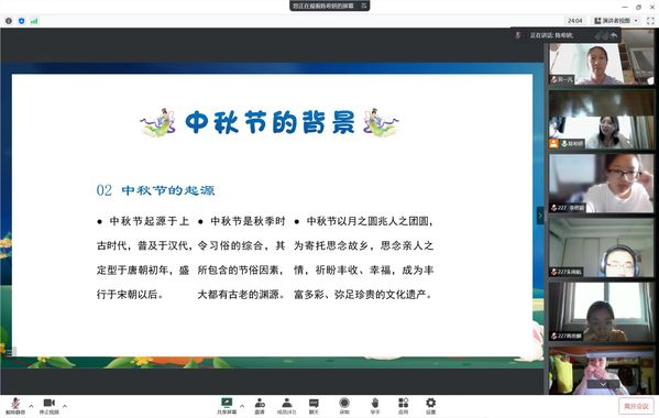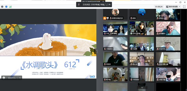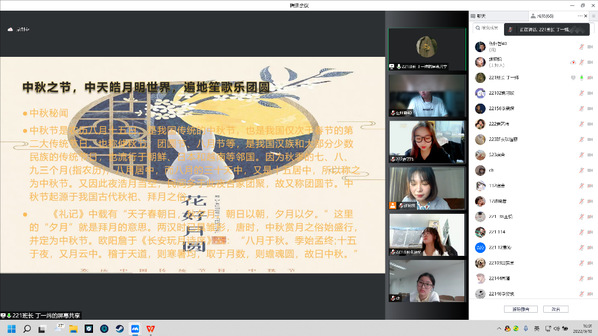 盛夏绕道去,金秋迎面来!农历8月15日是我国重要的传统节日〝中秋节”,为积极落实新生入学教育工作部署,引导老员工顺利适应老员工活、快速完成角色转变,suncitygroup太阳新城22级各班以“中秋节”为契机,在9月10日晚开展了中秋晚会,让广老员工更多地了解中华民族传统节日的文化内涵,广泛挖掘与诠释中华传统节日的文化底蕴,并通过“破冰行动”打破壁垒,消除陌生感,加深彼此之间的认识和友谊。