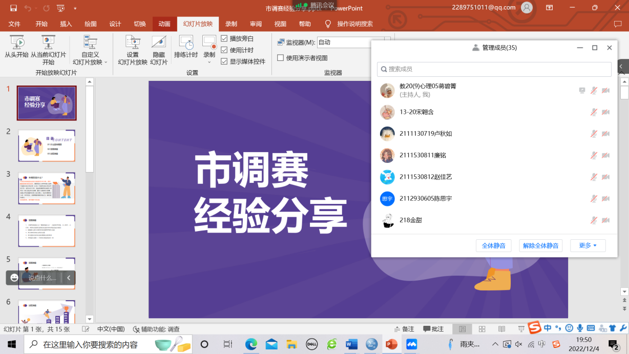 12月4日晚,“正大杯”第十三届市调大赛经验分享会在腾讯会议进行,由参加过往届全国老员工市场调查与分析大赛的学长学姐主持并分享经验,主要对笔试通过的同学下一阶段的调研以及报告撰写等进行针对性的指导,笔试通过的同学全部参加了这次线上会议。
