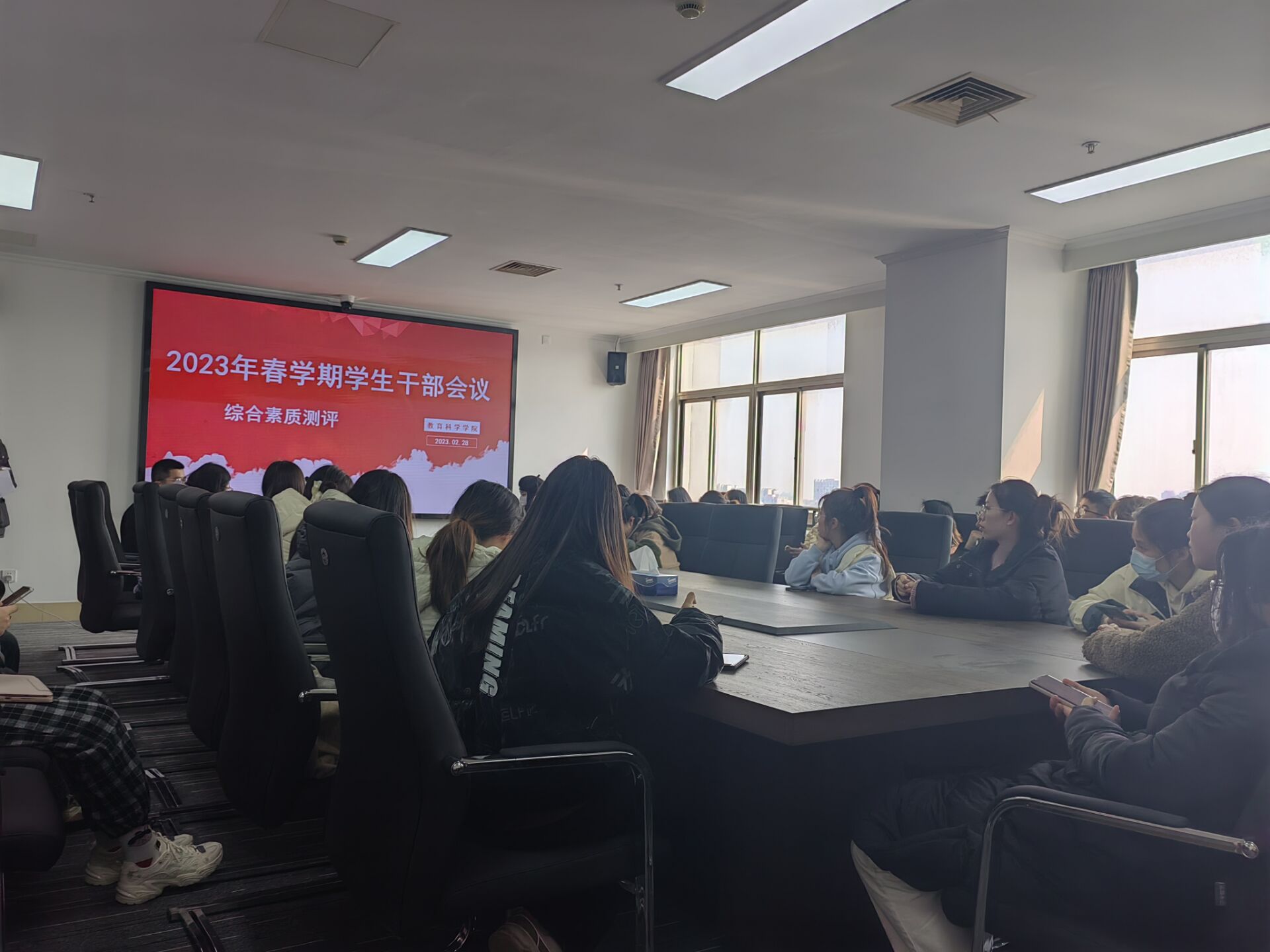 为深入贯彻落实《suncitygroup太阳新城员工素质综合测评办法》,进一步提高教育管理工作科学化、规范化、标准化水平,2月28日下午,2023年春学期员工干部综合素质测评会议在suncitygroup太阳新城1108会议室举行。陈志鹏老师、张钰老师以及各班班长、综测委员参加本次会议,会议由陈志鹏老师主持。