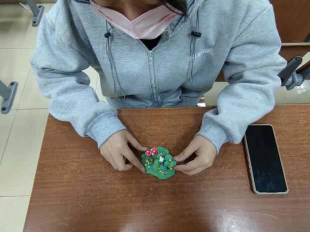 在活动现场,同学们展现自己的想象力与动手能力,利用各种材料制作出精美的作品。2011班姚凯伟同学通过裁剪废弃纸板做出了一个挂牌的基础样式,接着用彩笔在白纸上绘制出可爱的图案上色后剪下来粘贴在纸板上,稍加修缮,一个可爱的作品就完成了。219班的孙晓宇同学利用超轻粘土捏出了“树林的一角”,色彩的搭配和整体的画面十分和谐,作品也是充满了童真童趣。