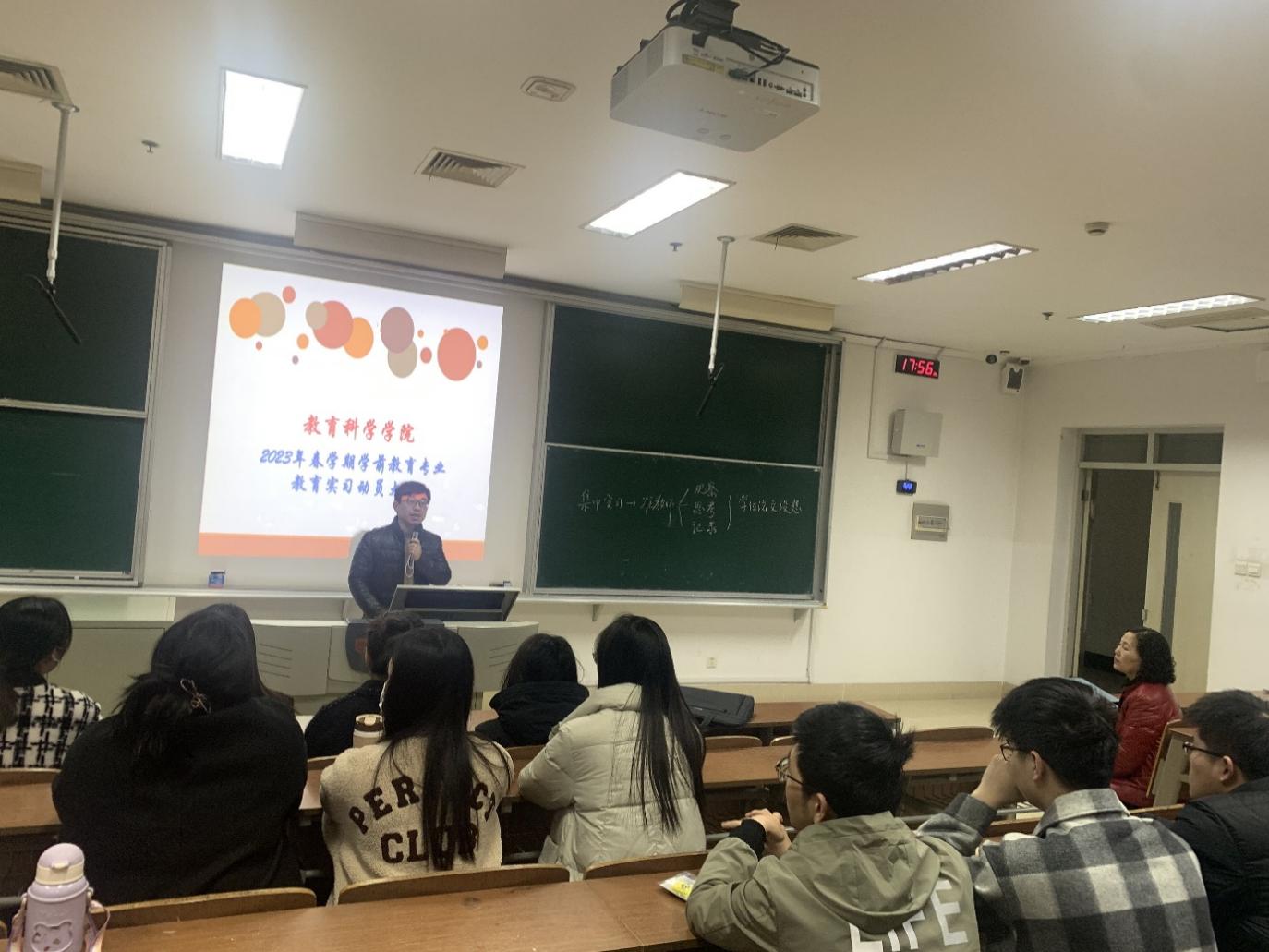 姜超对学前教育专业师范生进行教育实习动员讲话。他指出,教育实习具有非常重要的意义,建议员工在实习过程中,向准教师迈进,通过思考、观察、记录,为学位论文设想做准备。孙青介绍了相关实习内容,希望全体实习生在教育实践过程中得到锻炼和提升,高质量完成各项任务。魏哲峰提出全体实习生要遵守纪律,注意完全,希望大家能练好技术本领,认清形势,并祝愿全体实习生学有所获,实习工作顺利,圆满完成实习任务。