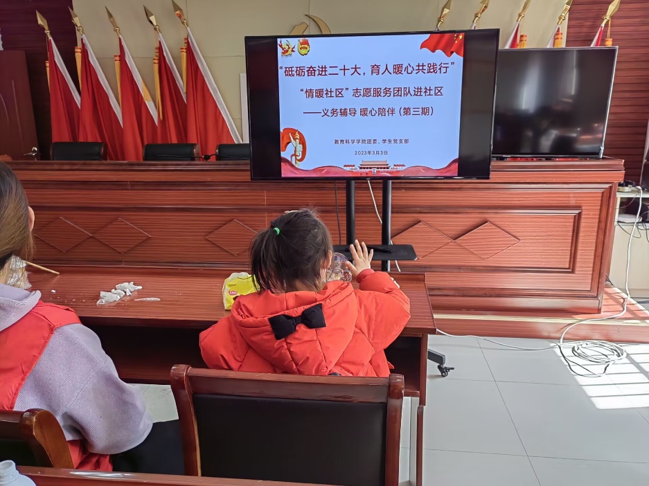三月春风暖人心,雷锋精神永传承。为进一步弘扬和传承“奉献、友爱、互助、进步”的志愿服务精神,紧扣高校立德树人的根本任务,引领广大青年学子践行雷锋精神,suncitygroup太阳新城“情暖社区”志愿服务团队深入大洋街道毓龙社区,于3月12日下午1点开展了“老员工进社区,义务辅导功课”课程教育和第一期科学小实验活动。