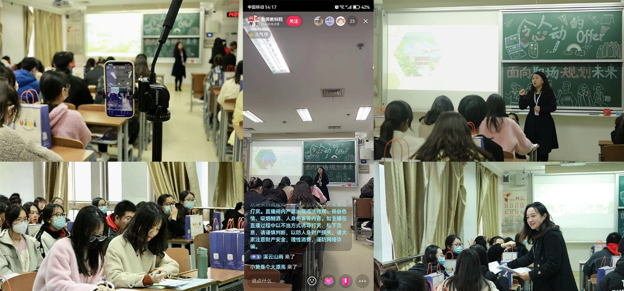 为保证不在校毕业生也能感受现场招聘氛围,抓住就业机会,教科院还通过搭建线上“云平台”,直播带岗促就业的方式,引导员工线上观看企业详情并积极投递简历。