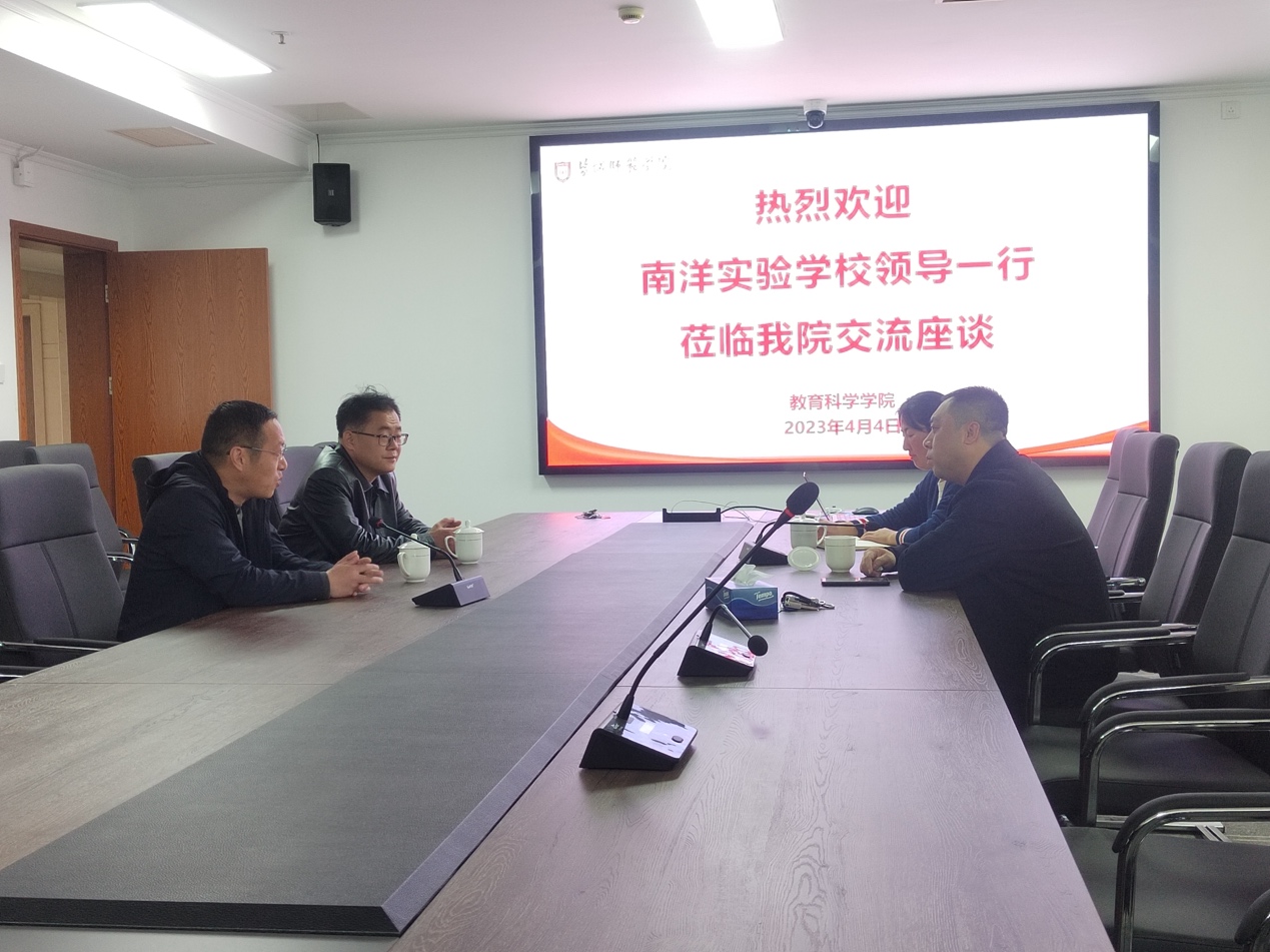 2023年4月4日上午,南洋实验公司唐董事长、吉书记一行就员工心理健康工作开展、以及与公司心理学系合作等事宜莅临公司开展交流座谈活动。suncitygroup太阳新城经理柴江、心理学系主任厉飞飞热情接待唐董事长一行,并与之开展深入交流。