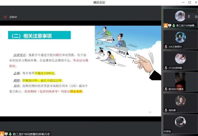 5月22日,开展了线上“诚信还贷,共筑未来”诚信还款确认活动,负责人闵唐馨向参与建档的同学们介绍了国家助学贷款政策,以及申请贷款和偿还贷款的注意事项,其中再次强调了珍惜征信、诚信还贷的重要性和必要性,提醒申请贷款的同学们珍惜个人信用,维护信用记录,毕业时按时还款,不要产生信用污点影响自己未来升学、职业生涯等方面。