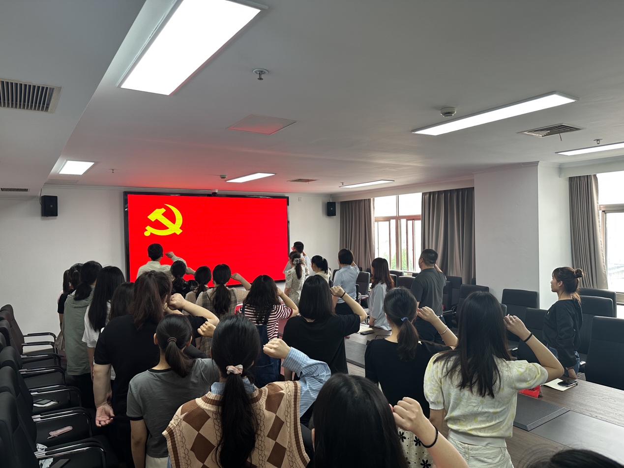 员工第五党支部书记陈志鹏带领全体毕业生党员重温入党誓词,引导毕业生党员牢记党员身份,在奋发有为中践行初心使命,立志民族复兴,不负韶华、不负时代、不负人民,在青春的赛道上奋力奔跑,为成为一名合格的共产党员奋斗不止。