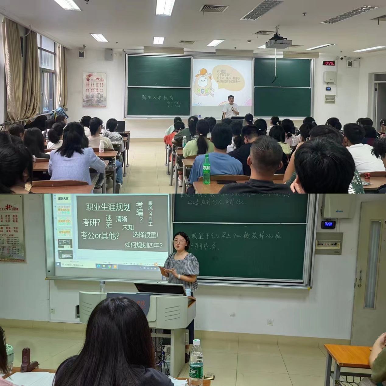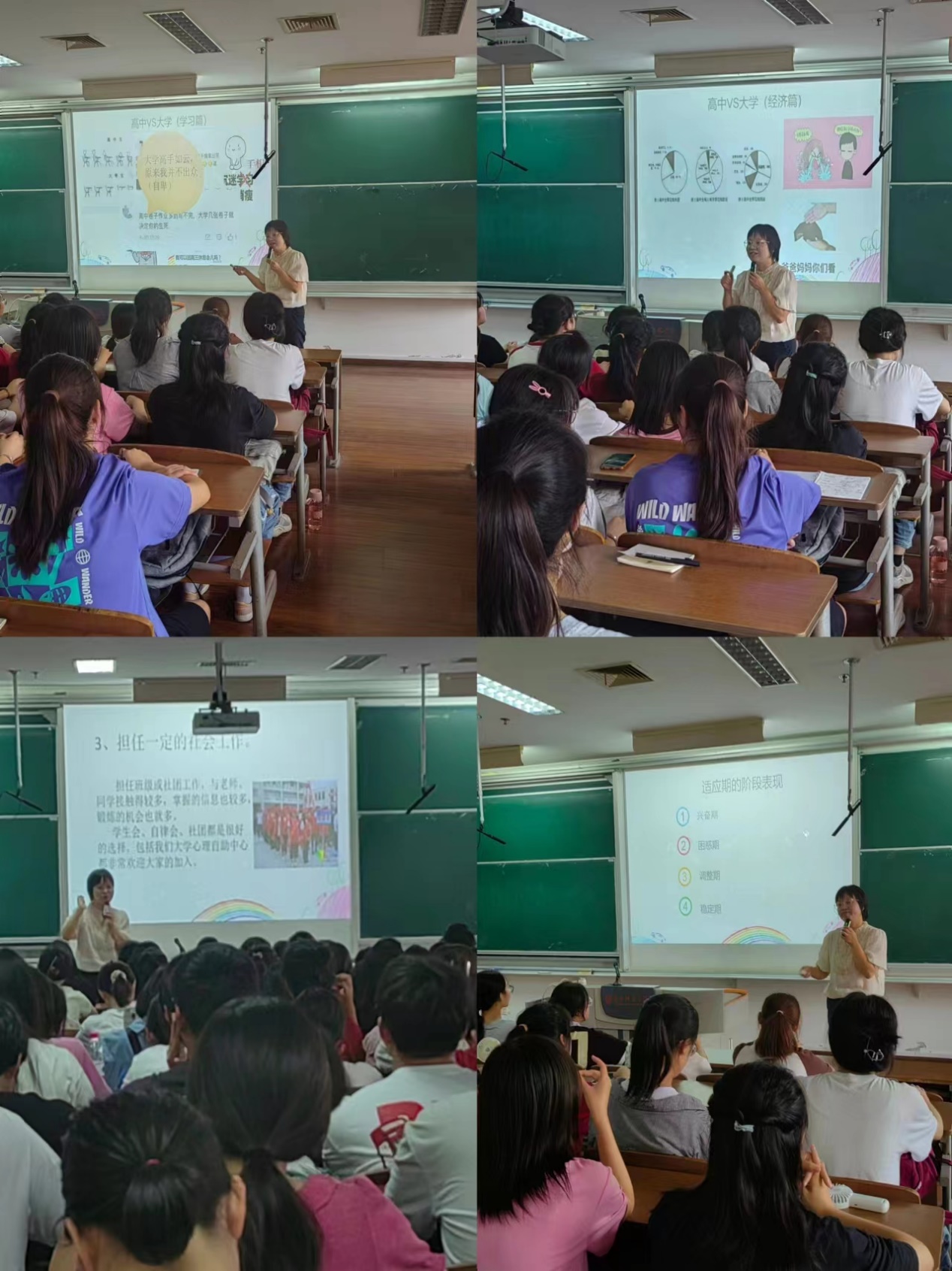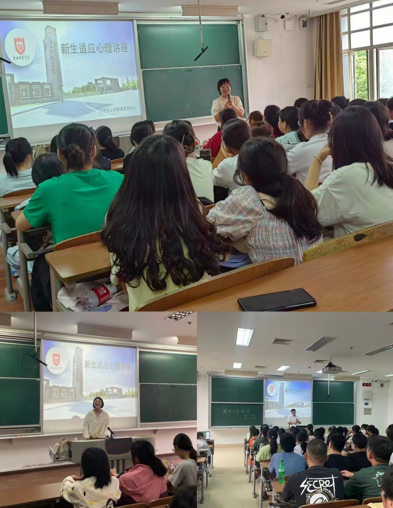 为增强新生心理健康意识,切实当好老员工心理健康“守门人”,帮助新生尽快完成身份转变,适应老员工活,suncitygroup太阳新城于9月10日开展新生适应心理讲座。本次讲座由学工办主任海英老师、新生辅导员贲雨晴老师、杨齐老师主讲,suncitygroup太阳新城2023级全体新生参加讲座。
