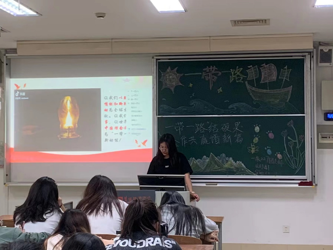 活动伊始,各团支部组织观看习近平总书记在第三届“一带一路”国际合作高峰论坛开幕式上的主旨演讲视频,从“一带一路”十年成就、国际合作高峰论坛和人类命运共同体三个方面学习了解“一带一路”的高质量建设情况,突出学习宣传以和平合作、开放包容、互学互鉴、互利共赢为核心的丝路精神,教科院同学深入学习领会中国理念和中国方案的重大意义、丰富内涵、精神实质和实践要求。随后,各支部团支书组织讲解“一带一路”国际高峰合作论坛对我国和世界发展的意义,深入学习贯彻习近平新时代中国特色社会主义思想。通过学习,同学们纷纷立志将以胸怀天下的情怀和脚踏实地的行动为全球发展多作贡献,当好中国故事的“代言人”,追求卓越,奋勇争先。最后,各支部结合员工自身的实际情况,充分考虑青年员工的多元化需求和特点,勇于尝试并开展互动式、参与式的主题团日活动,针对青年员工如何在“一带一路”建设新征程上贡献青春力量展开交流讨论。他们领悟到青年学子应当学会讲好中国故事,推动构建人类命运共同体,把独立自主、自力更生作为自己的出发点,携手共建“一带一路”,推动经济全球化朝着开放、包容、普惠、平衡、共赢的方向发展。