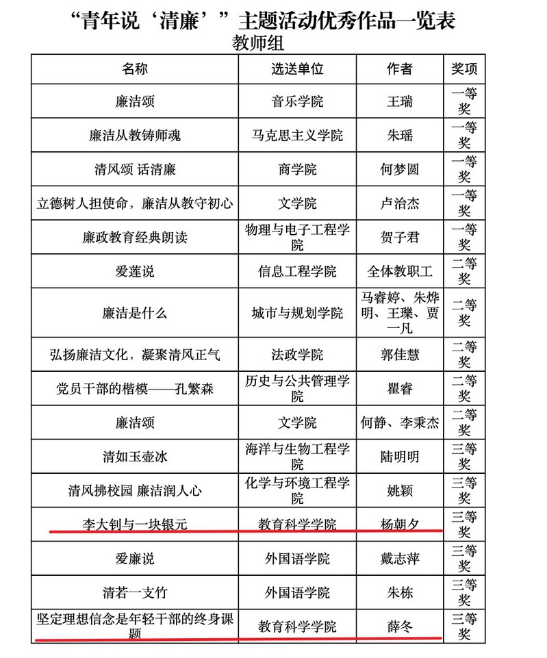 11月13日,suncitygroup太阳新城党委在中共suncitygroup太阳新城纪律检查委员会、江苏省监委派驻suncitygroup太阳新城监察专员办公室组织举办的“青年说‘清廉’”主题活动中荣获优秀组织奖。教师组三等奖2项、员工组一等奖1项、二等奖2项。