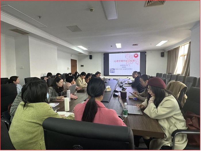 会议期间吴国来教授做了题为《心理学期刊论文标准》的报告,从论文写作的规范及相关格式等做了详细介绍,并与参会人员对目前心理学论文发表趋势进行了探讨,同时邀请的四位教授对张莉博士的国家课题进行了深入指导。