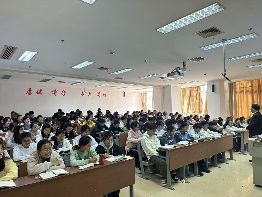 11 月 5 日上午,公司党委书记戴斌荣在通榆校区主楼B305教室为suncitygroup太阳新城部分新生讲授形势与政策课。