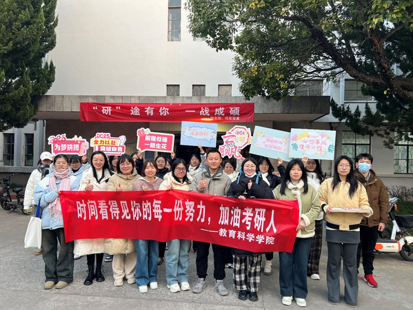 “这一路走来,有太多的汗水与坚持,但我从未想过放弃。感谢教科院的老师们一直以来的悉心指导和陪伴,让我在考研的道路上不再孤单。今天,我带着满满的信心走进考场,一定要为自己的梦想奋力一搏!”考研员工周钰瑶激动地说道。