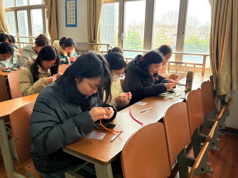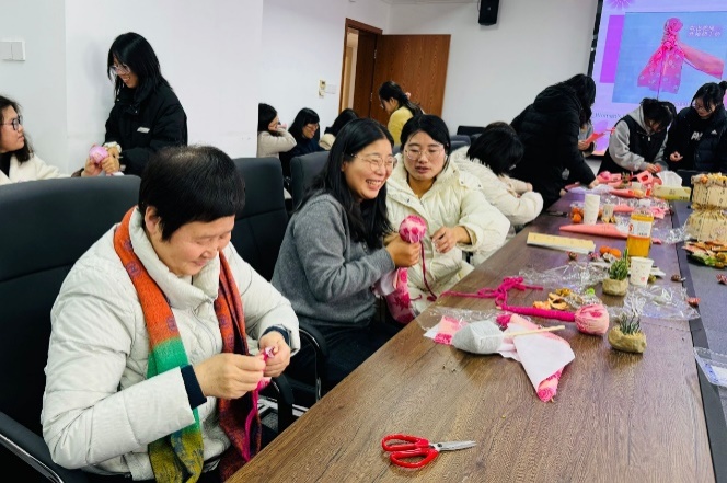 2022级员工盛明华捧着亲手制作的养生锤笑道:“和老师一起做手工就像上了一堂‘减压课’,不仅能学到养生知识,还发现老师们课堂外的可爱一面!”小小养生锤不仅成为传递健康的载体,更在指尖流转中织就了师生情谊的温暖纽带。