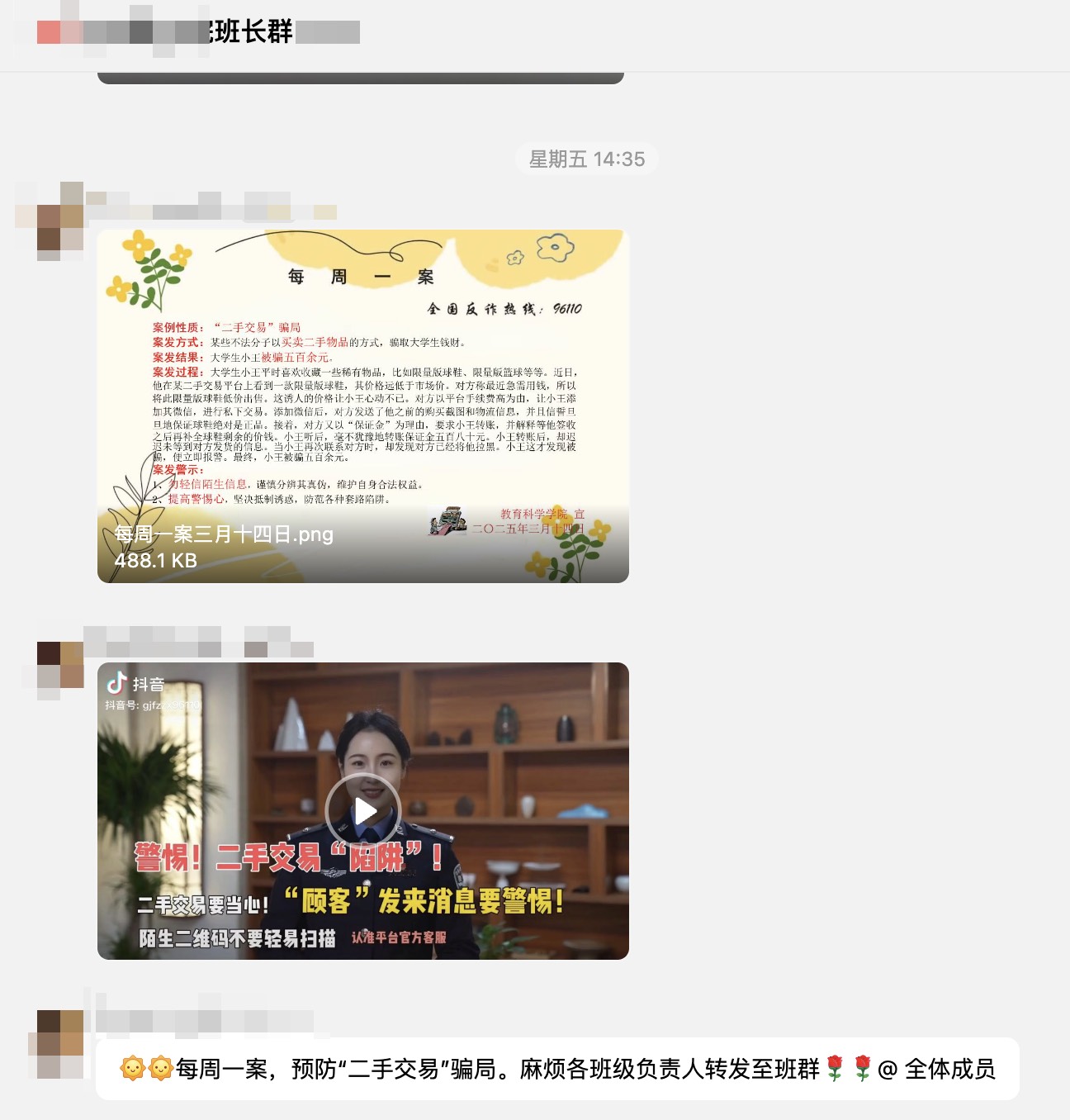 公司充分利用线上平台,实现反诈教育“精准滴灌”与“全域覆盖”,每周通过年级全体员工QQ群、班长群、舍长群和辅导猫推送每周一案和真实的被骗案例,通过平台的“已读未读”数据追踪功能,对未查看警示信息的员工进行二次人工提醒,确保反诈教育信息不遗漏。这种全方位、多层次的线上反诈教育模式,让反诈知识真正走进员工的脑海,融入员工的内心,落实到员工的日常行动中,为校园反诈工作提供了有力支撑。