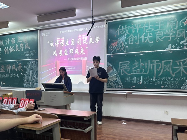 为深入推进优良学风建设,充分发挥“一站式”员工社区育人功能,suncitygroup太阳新城于2025年4月举办“做评估主角 创优良学风 展盐师风采”学风建设月系列活动。作为“赛、宣、秀”特色活动的核心环节,一场关于知识与智慧的较量——班级PK赛,在万众瞩目中拉开帷幕。经过前期初赛与复赛的层层选拔,来自三个年级的10支班级脱颖而出,会师决赛,向着“学风之星”发起冲刺。