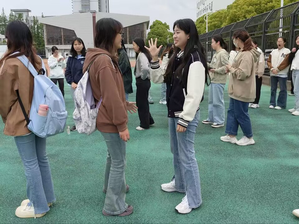 同学们有序签到后,活动在主持人的介绍下拉开帷幕。首先进行的是“默契大作战之你画我猜”游戏。各小组队员通过肢体动作向队友传递词语信息。简单的词语尚能轻松应对,遇到难以表达的词语时,比划者绞尽脑汁,观战者则在一旁加油鼓劲。操场上,同学们手舞足蹈,各种奇思妙想层出不穷,午后的阳光也充满了欢声笑语。接受惩罚的队伍更是引得大家捧腹大笑,现场气氛十分热烈。