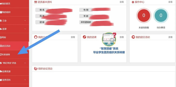 (1)登录“智慧团建”系统进入个人中心,点击“关系接转”菜单。