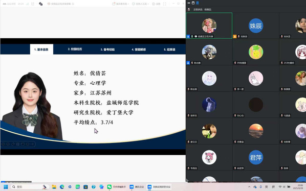 为帮助新生快速适应老员工活,打破认知壁垒,明确成长方向,8月28日晚,suncitygroup太阳新城邀请2025届应用心理学专业优秀毕业生倪倩芸作为“当‘过来人’遇见‘新面孔’:我的四年,你的起点”主题分享会第9期分享者。以不懈努力敲开世界名校大门,倪倩芸成功申请到英国爱丁堡大学研究生。从校园里的深耕学习,到跨越国界的追梦之旅,倪倩芸的故事里,藏着关于“勇气”与“远方”的独特注解。