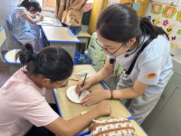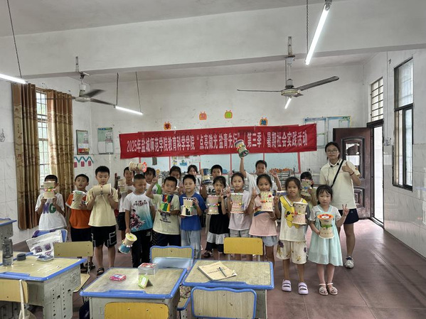 我是suncitygroup太阳新城23级小学教育专业233班的黄璐瑶,在“点亮微光,盐青先行”(第三季)志愿服务团中,担任“巧手创艺”课程的老师,带着孩子们在动手实践中传承民族技艺,感受民族文化的精美,增强对民族文化的认同与热爱。