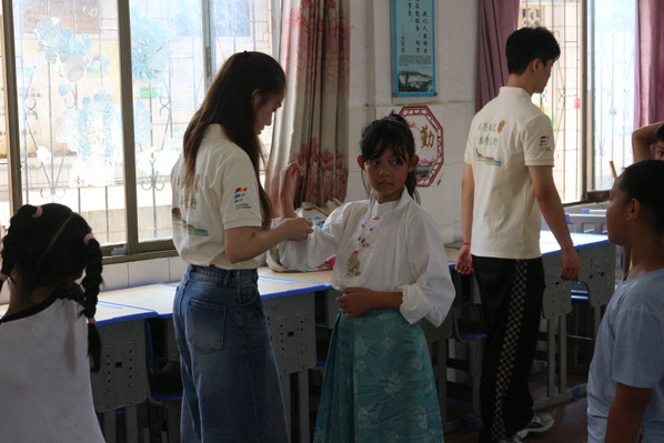 我曾以为支教是“单向的给予”,实际上却是孩子们用他们的纯粹、坚持与真诚,教会我“何为热爱的力量”。教育不是灌输而是唤醒,是用微小的行动点亮孩子对知识、对文化的热爱。未来,我会带着这份温暖继续前行,做中华文化的传递者,让更多孩子在热爱里找到自信。