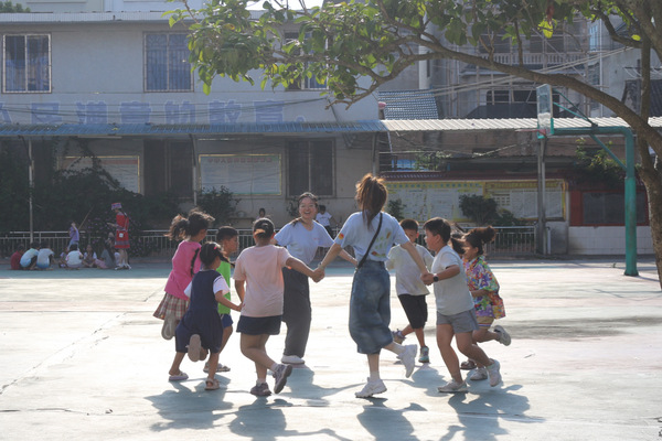 结课那天,我把“舞台”搬到了操场。随着“阿细跳月”明快的音乐响起,孩子们手拉手在操场上围成大圈,认真地跳跃、转身。风吹过操场,带着孩子们的笑声和舞蹈的节拍,成了这个夏天最动人的画面。