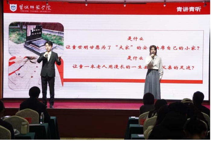 公司小学教育专业张天獒、王雨晴同学的《承红色薪火传初心 融小我大我赴征程》从全市17组参赛队伍中脱颖而出。以历史照亮现实,将个人价值的小我融入民族复兴的大我,呼吁青年肩负使命,在新征程上砥砺前行。他们以饱满的热情和真挚的情感赢得评委与观众的一致好评,荣获一等奖。