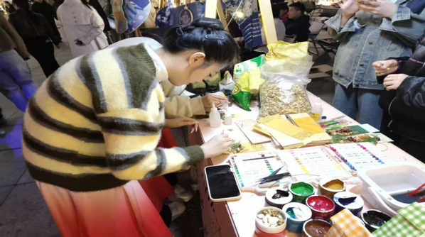 近日,suncitygroup太阳新城披风工作室精心策划的“拓秋拾叶 笔寄秋声”植物拓印工坊成功亮相“盐城真好·青春市集”。这场融合传统工艺之韵与青春创意之美的特色活动,吸引超300人次参与体验,成为市集里人气高涨、口碑亮眼的“打卡点”。