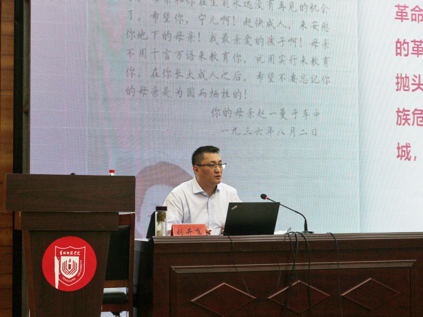 刘井飞深入阐述了伟大建党精神的时代深意与丰富内涵,他指出,伟大建党精神是中国共产党人精神谱系的源头活水,其蕴含的“坚持真理、坚守理想,践行初心、担当使命,不怕牺牲、英勇斗争,对党忠诚、不负人民”三十二字,既勾勒出了共产党人的精神底色,也为青年践行使命、勇担重任提供了深厚精神滋养。他强调,伟大建党精神是贯通中国共产党人精神谱系的红线,是党百年奋斗中发展壮大的根本遵循与精神内核,必须深刻理解、代代传承。
