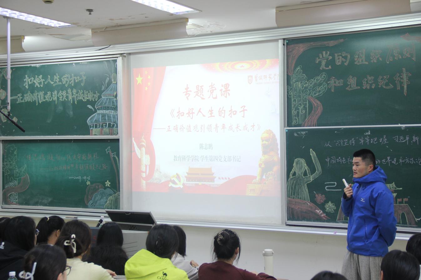 党课伊始,陈志鹏直指青年价值观塑造的重要性,强调正确的价值观是青年成长的铺路石,不仅关乎个人发展,更影响集体风气与社会未来。他以“宿舍氛围对个人成长有着关键作用”为例,指明好的氛围能形成正向激励、实现全员上岸的成长共赢,也引用了诸多身边实例,让同学们深刻理解了集体环境与个人进步的紧密联系。