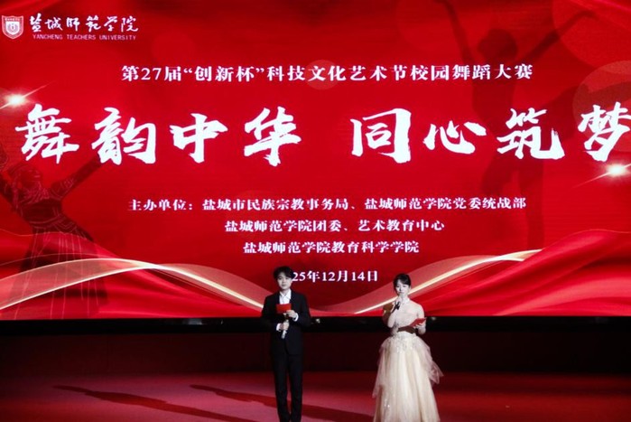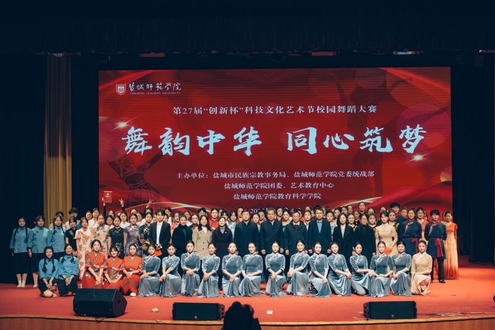 12月14日,第27届“创新杯”科技文化艺术节“舞韵中华,同心筑梦”校园舞蹈大赛在新长校区老员工活动中心举办。盐城市委统战部副部长、市民宗局局长、党组书记、一级调研员黄斌,市民族宗教事务局党组成员、副局长陈铁汉,市民族宗教事务局党组成员、副局长王谋,公司副董事长徐华,公司党委常委、统战部部长费正皓出席活动。